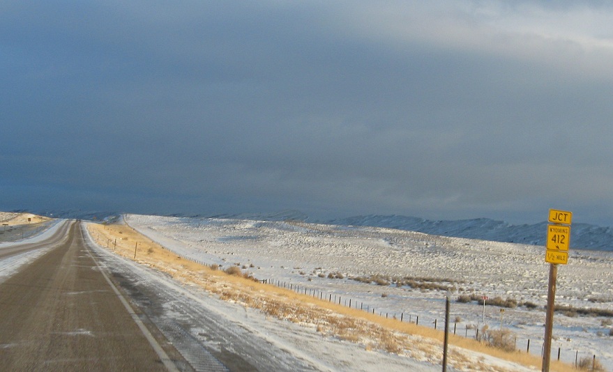 Turn right for WYO 412 south, which heads back down towards the Bridger Valley