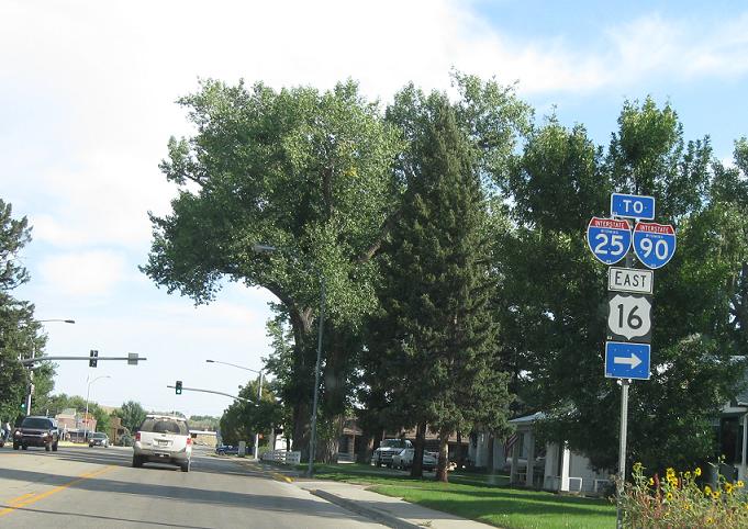 S to US-16, N to I-90/I-25 Bus/I-90 Bus/US-87