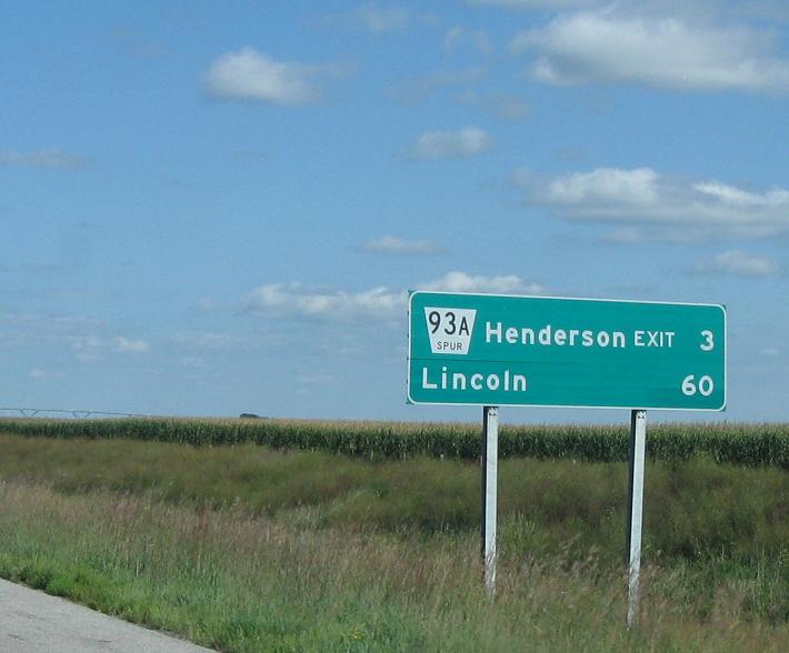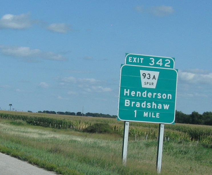 Exit for Spur 93A, which heads north to US-34 and south to Henderson. I’m not sure why Bradshaw is signed here, since upcoming L-93E serves it more directly