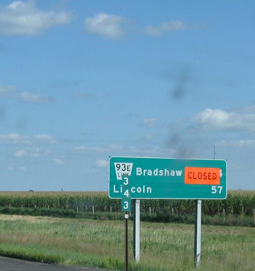 Exit for Link 93E, which also serves Bradshaw/US-34