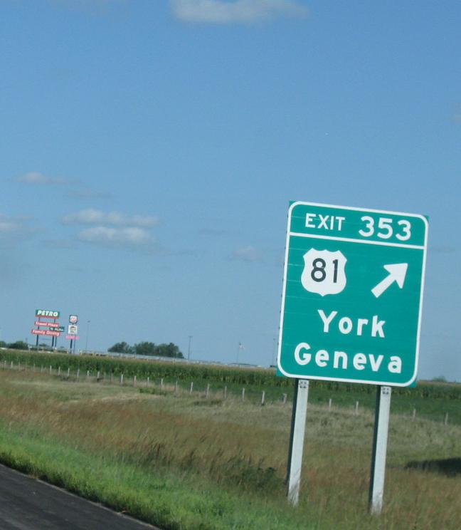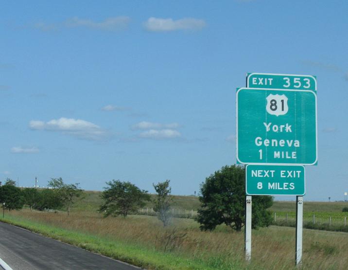 Exit for US-81, which serves York and Geneva, passing all the way through Nebraska north-south