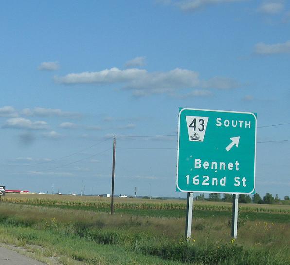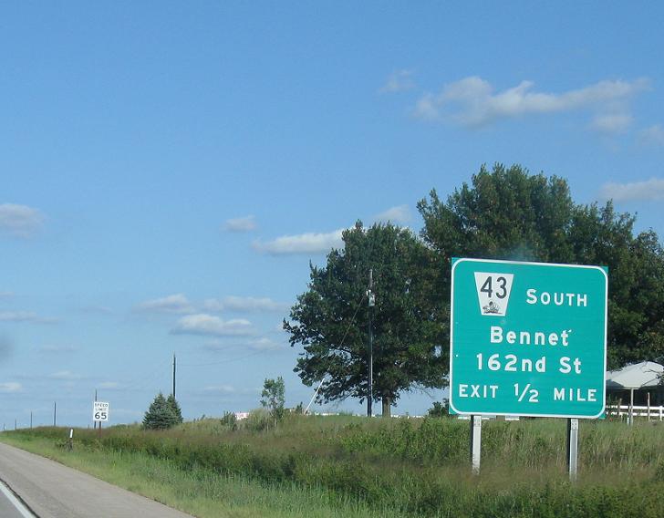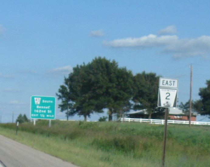 Exit for Nebraska 43 South towards Bennet. N-43 North will join N-2 for a brief period of time