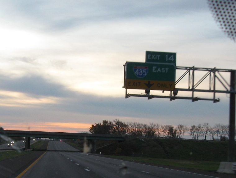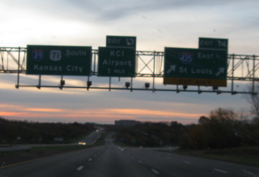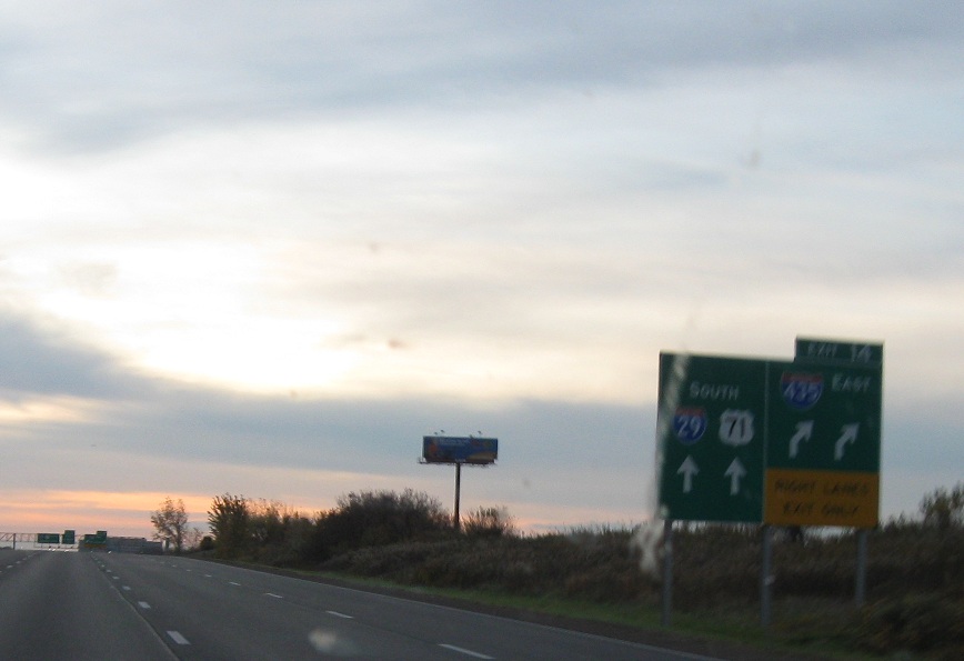 Exit for I-435 East,stay straight for 29/71 South and KCI