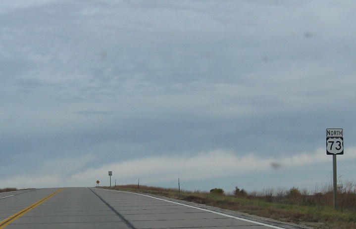 Reassurance shield as we make our way west. 73 heads due west to Lancaster, then northwest but mostly west to Horton, then due north to Nebraska