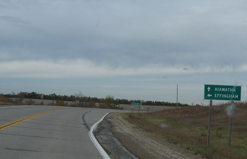 Follow 73 North to Hiawatha and K-9 west towards Effingham. K-9 is a fairly long route, extending all the way to Dredsen in Decatur County, but it takes a really circuitous route