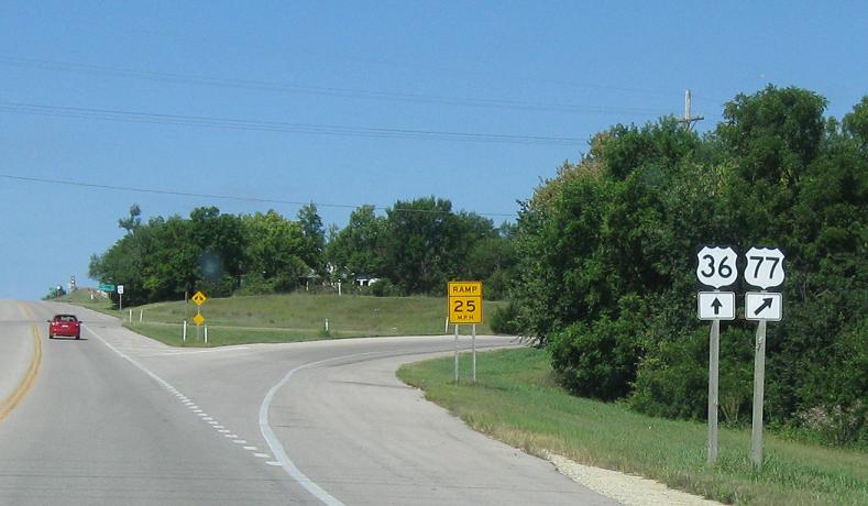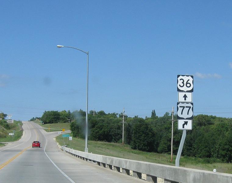 Bear right for US-77 North, stay straight for 36 West as we head out of Marysville