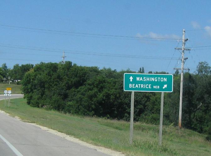 Follow US-77 North towards Beatrice Nebr, and 36 West towards Washington