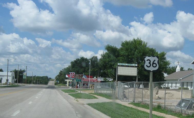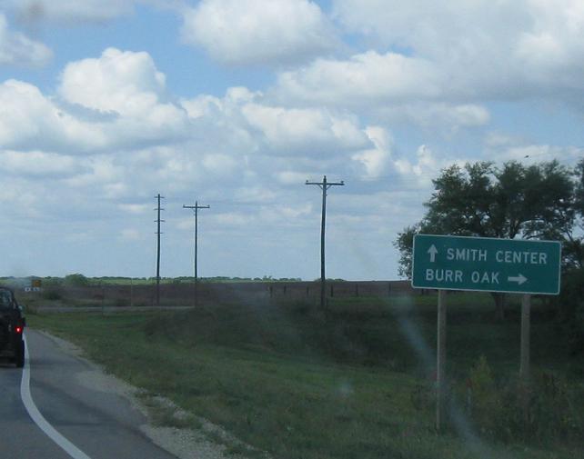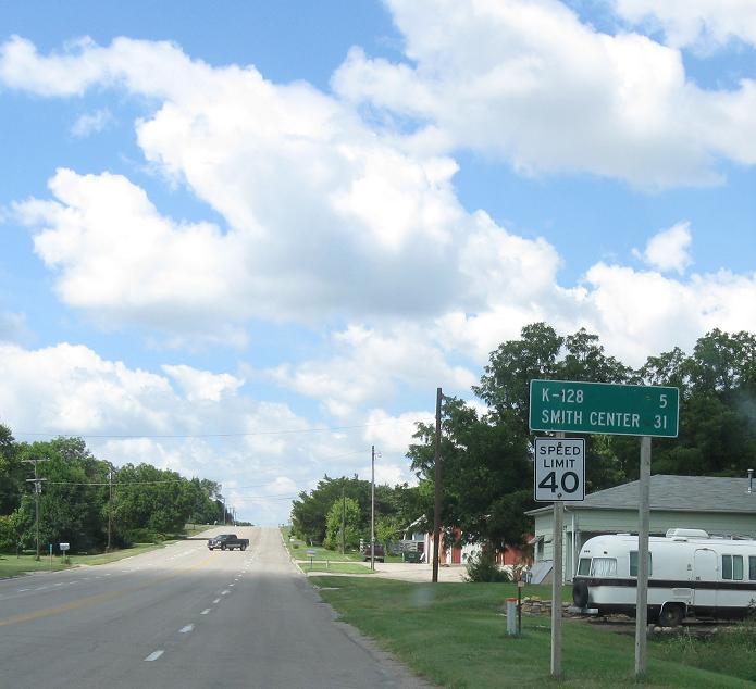 Follow K-128 north towards Burr Oak, and 36 west/128 south towards Smith Center. The routes will run concurrent for 2 miles