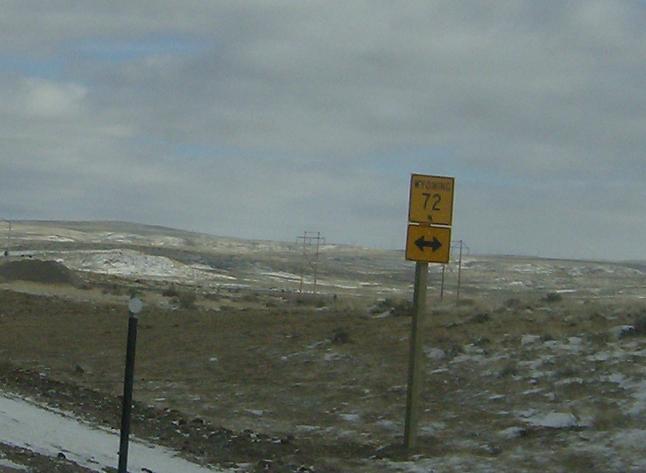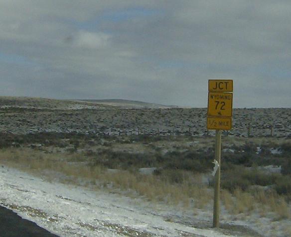 Junction Wyoming 72 coming up, which heads north to Hanna and south to I-80