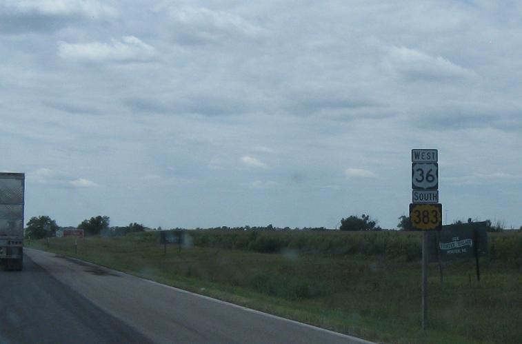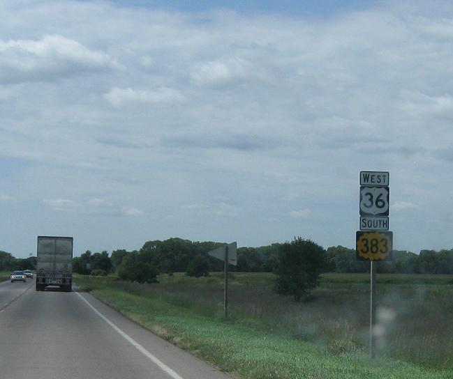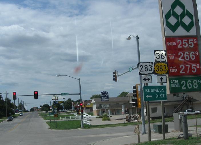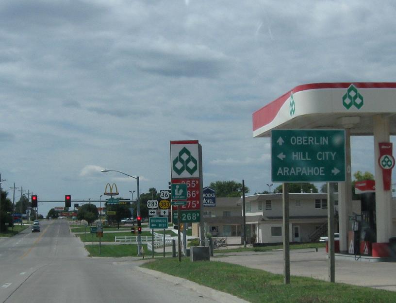 Follow 283 North towards Arapahoe (Nebraska), 283 South towards Hill City, and 36 west/383 south towards Oberlin