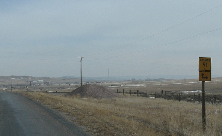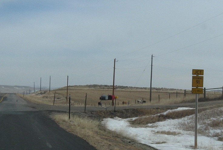 Stay straight for WYO 91 towards Douglas, which continues on this old 20/26/87 alignment, or head 20 miles south into the middle of nowhere on WYO 91 South. WYO 96 ends.