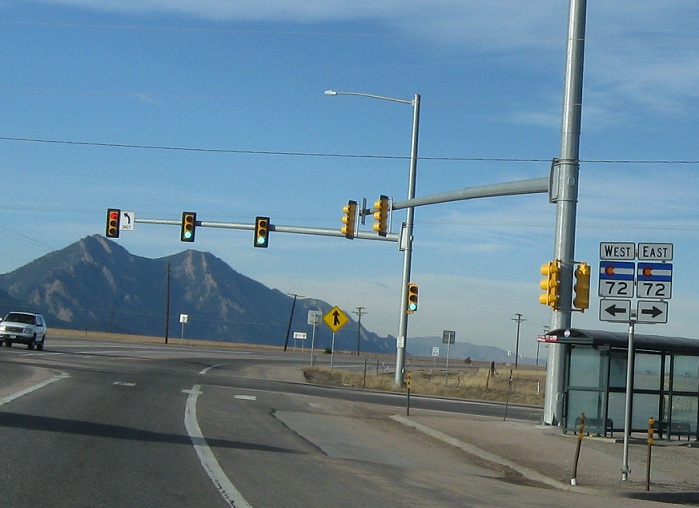 Junction SH-72 coming up as we briefly pass through a remote exclave of Arvada
