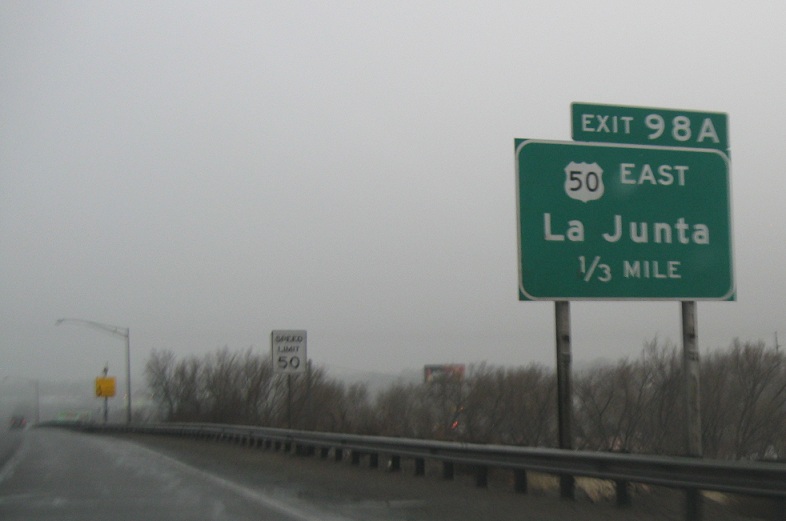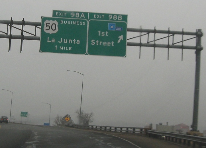 1 mile to junction US-50 Business, which serves downtown Pueblo and stays separate from US-50 all the way to Avondale. From here it’s also the fastest way to La Junta. It’s a weird route though because from a westbound direction it will end almost immediately at JCT SH-96, never reconnecting to US-50