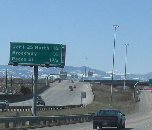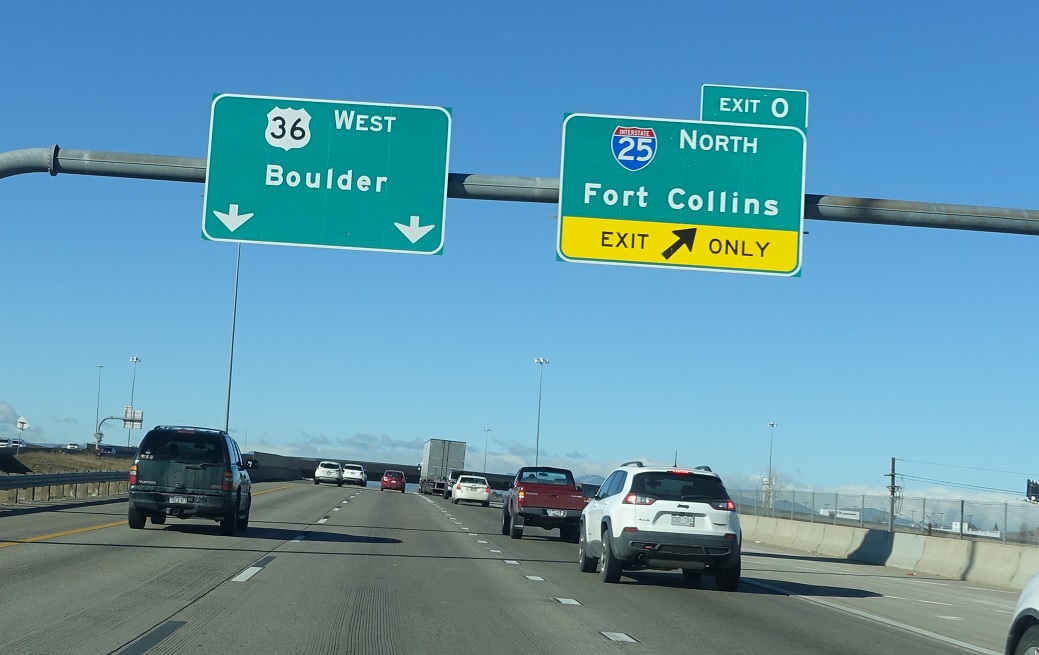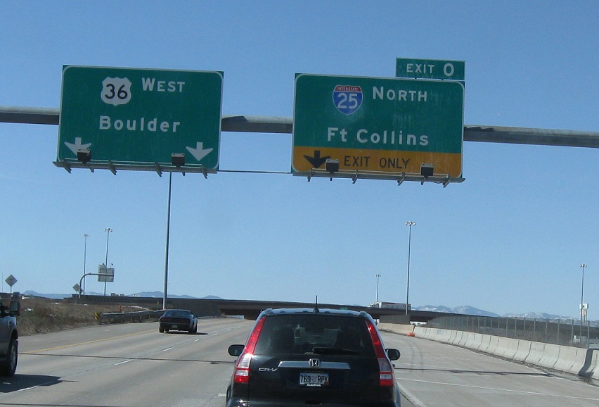 Exit here for I-25 and unsigned US-87 north, stay straight to continue on US-36 towards Boulder