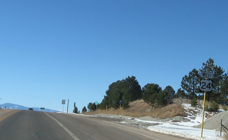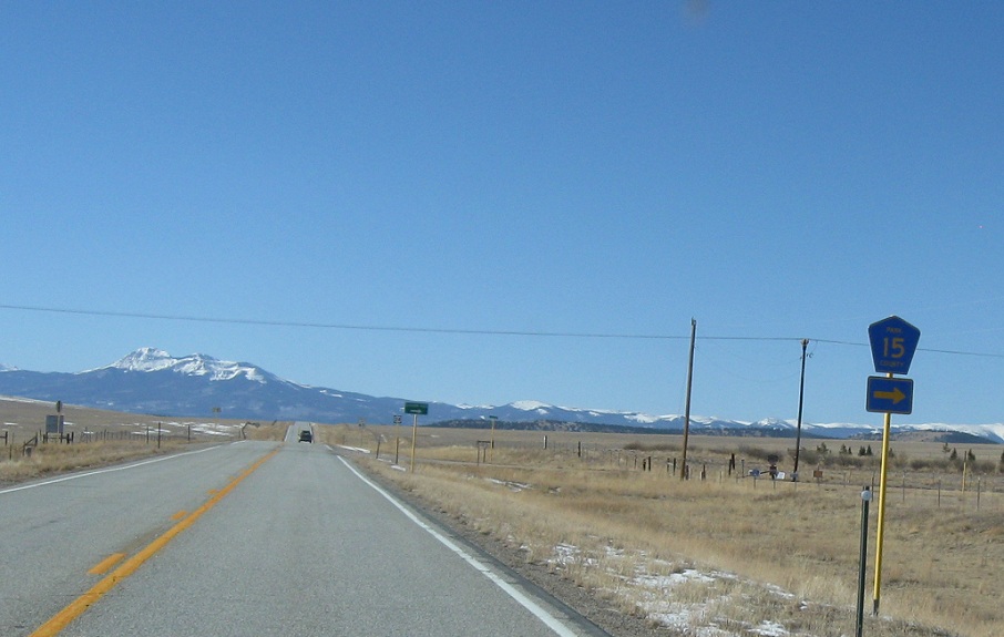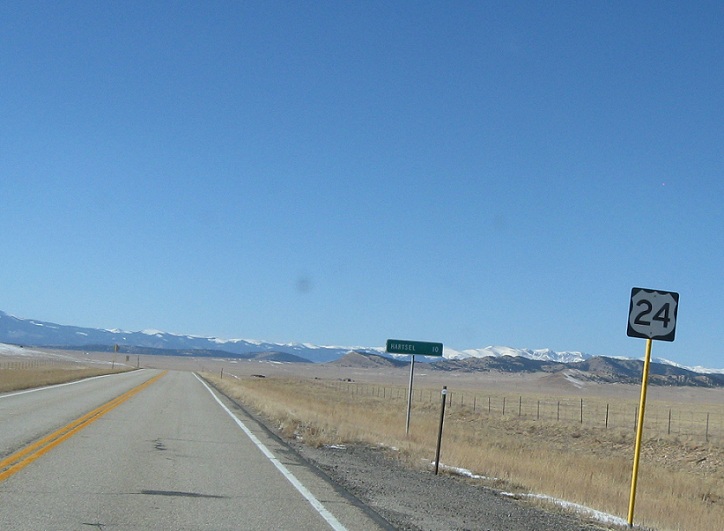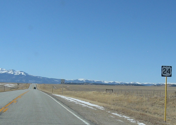 A couple miles later and we’ll come into a big valley. US-24 is done with mountains for a little while, and we’ll come to a junction with CR 23 at the entrance to this high plain