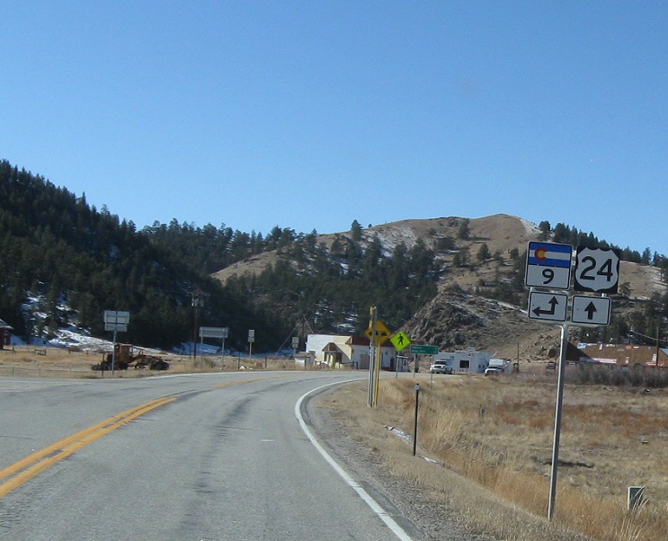 Follow SH-9 South to CaƱon City, follow US-24 West/SH-9 North towards Fairplay. The two routes will run concurrent for less than a mile