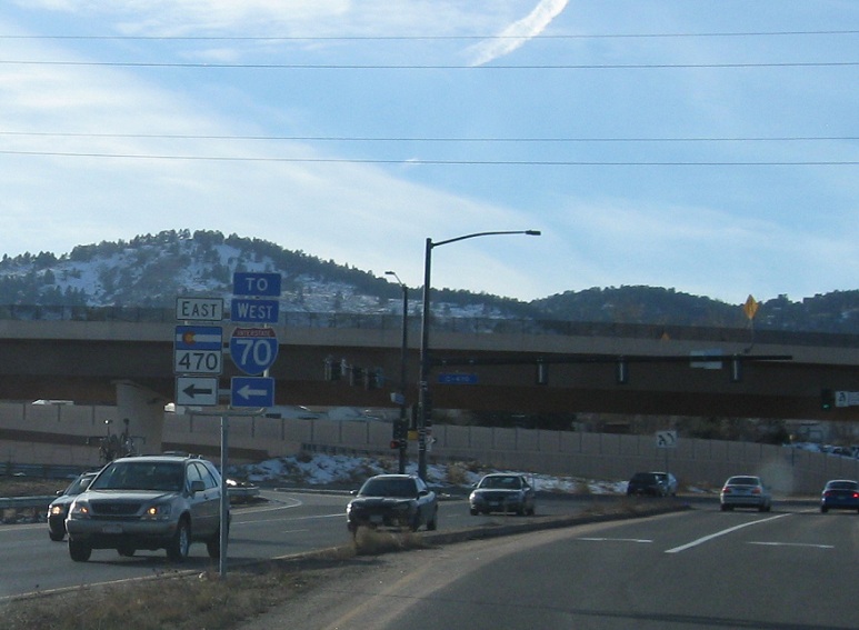 Just after the US-40 junction we’ll come to a junction with SH-470. This is the western terminus of SH-470, which serves the southwest portion of Denver’s outerbelt
