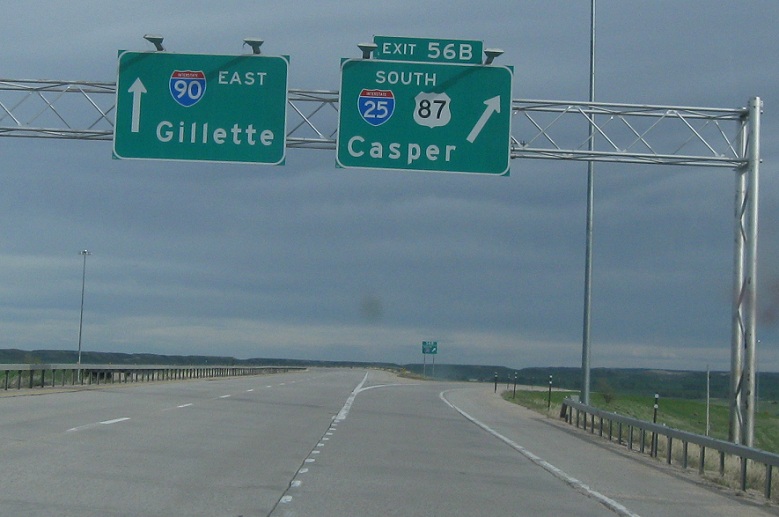 Exit for I-25 South towards Casper. I-25 will take US-87 with it and I-90 will continue towards Gillette by itself