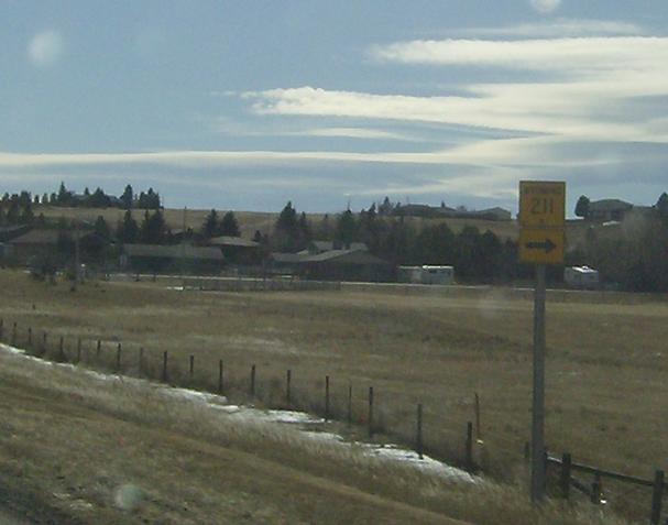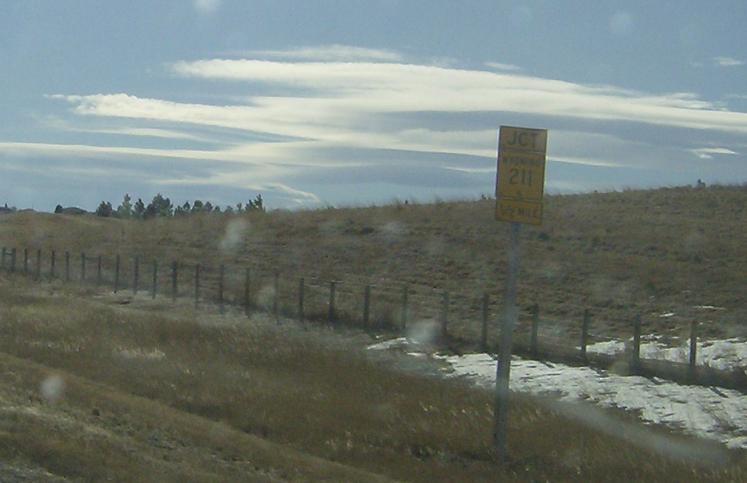 WYO 211 turns right, heads under the interstate and heads up Horse Creek Rd before ending abruptly. After several miles of a dirt Horse Creek Rd, the state highway designation resumes a couple miles west of Chugwater