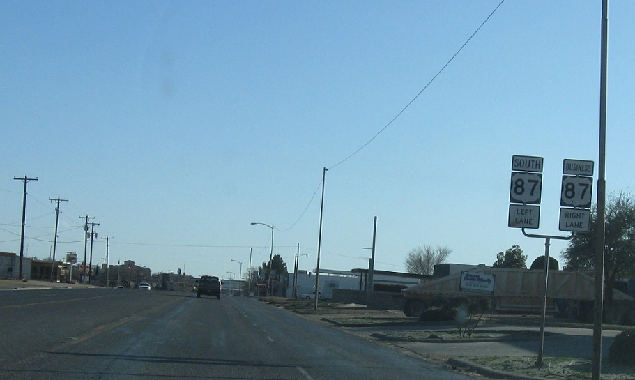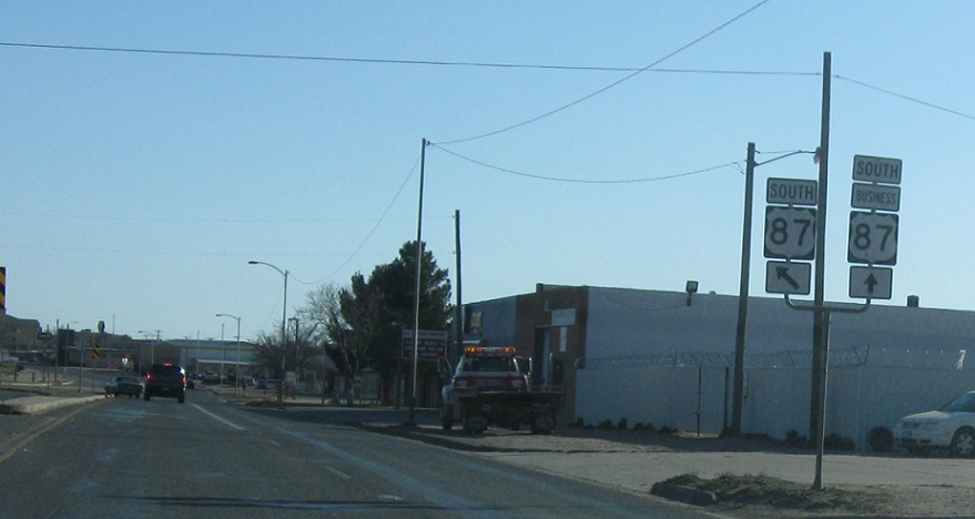 Get in the right lane to follow 87 Business south, stay straight for 87 south. The two routes will parallel each other within a block of each other through town