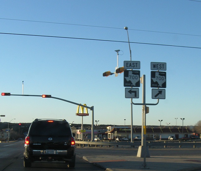 About a mile later, we’ll come to FM 700, a loop road around Big Spring. Exit right for FM 700 west, turn left for FM 700 east