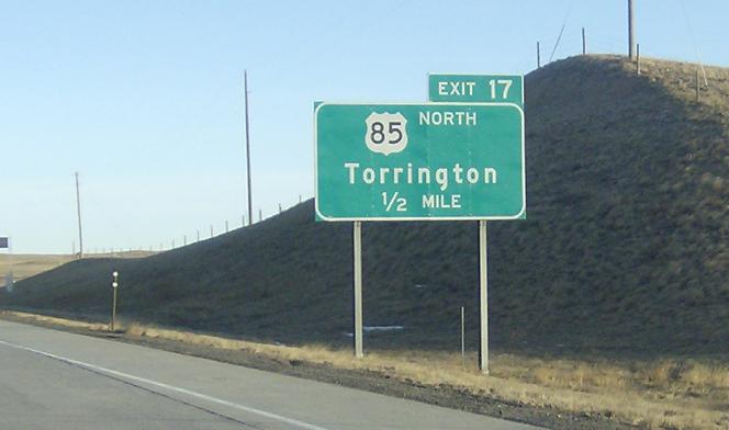 S to I-25 Bus/US-85/US-87 Bus/WYO 224, N to WYO 211/WYO 321
