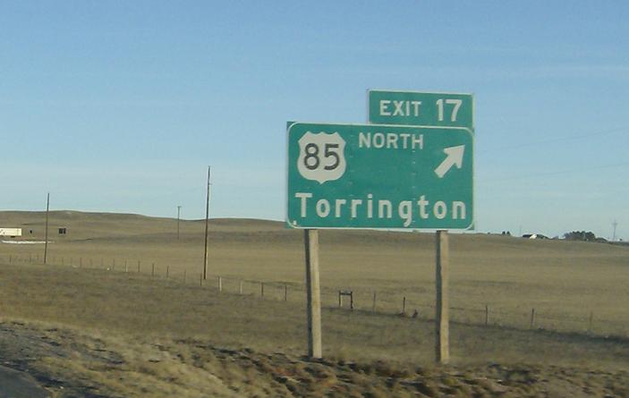 US-85 exits, heads north. I-25/US-87 continue north towards Casper