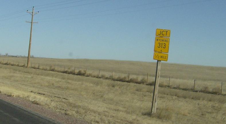 Junction Wyoming 313 coming up in half a mile. This is the fastest way to any interstate (I-25) from here