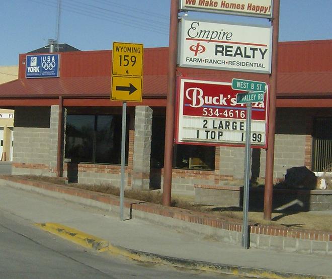Just a few blocks after 26 and 85 join we come to a junction with WYO 159 which heads north to some dirt county road
