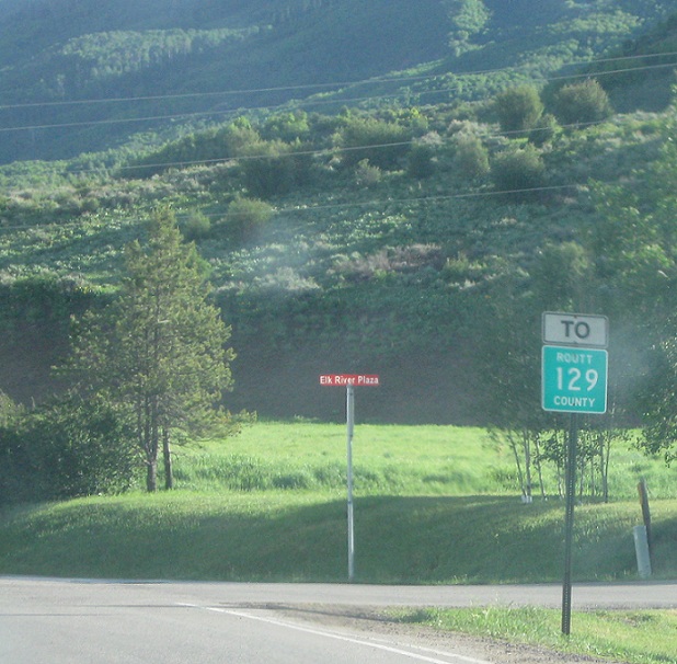 Turn right to get to Routt CR 129. County roads in Routt are signed with a green shield as we pass out of downtown Steamboat