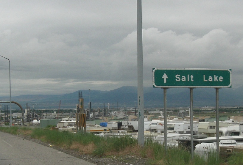 Reassurance shield after the SR-93 junction. We’ll enter the city of North Salt Lake at the Subway in the distance