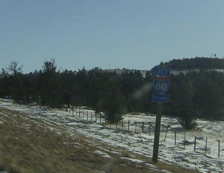 Turn right for 80/30 to Laramie, stay straight for 80/30 to Cheyenne