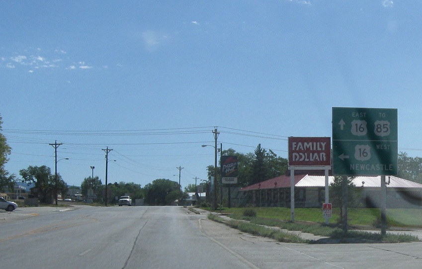 1.83 miles later, we’ll arrive at the other edge of the bypass. Turn left for 16 west back into Newcastle; stay straight for 16 east TO US-85