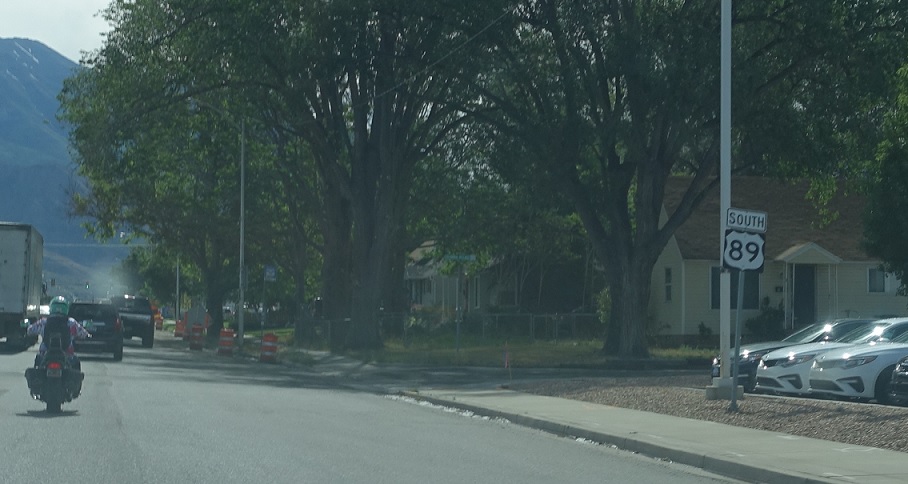 A few blocks later, we’ll come to a junction with 100 East/SR-74 North. Stay straight for US-89 South.