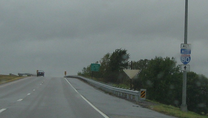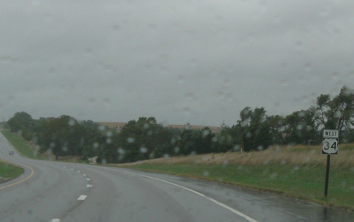 Follow US-34 for I-80 Alternate, as it parallels the interstate all the way to Grand Island. Spur 55C serves the Lincoln Airport and is unsigned. The junction is just over this hill