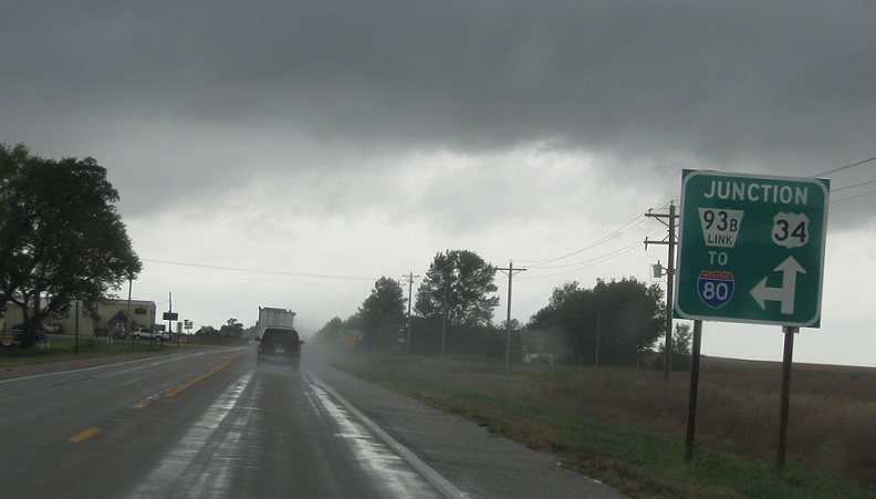 Turn left for Link 93B to I-80. Stay straight for US-34 west