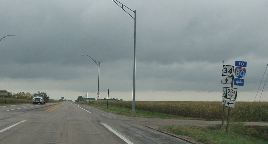 Turn left for Spur 93A south to I-80. Stay straight for US-34 west