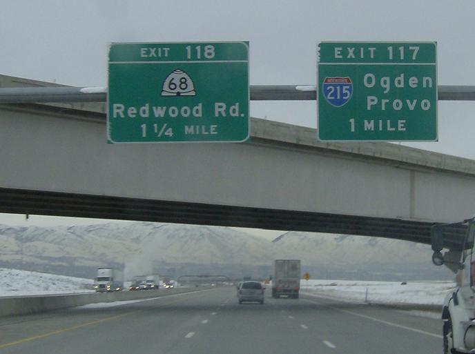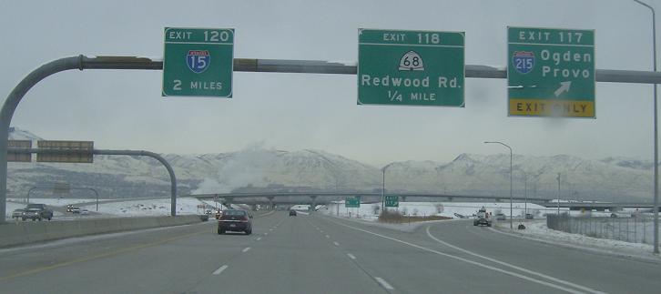 2 miles to the junction with I-15 through Salt lake, 1/4 mile to SR 68, and exit for I-215 north and south.