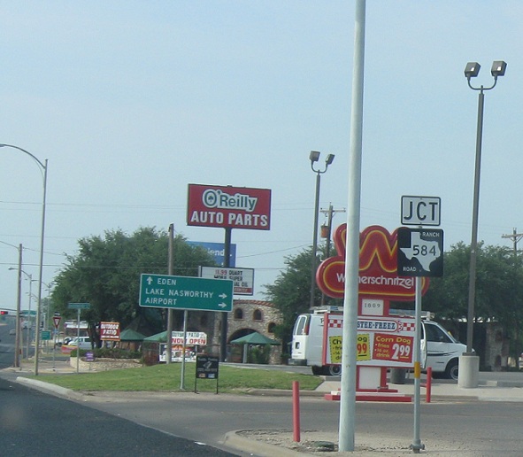 Follow RM 584 towards Lake Nasworthy and the Airport. Stay on 87/277 for Eden
