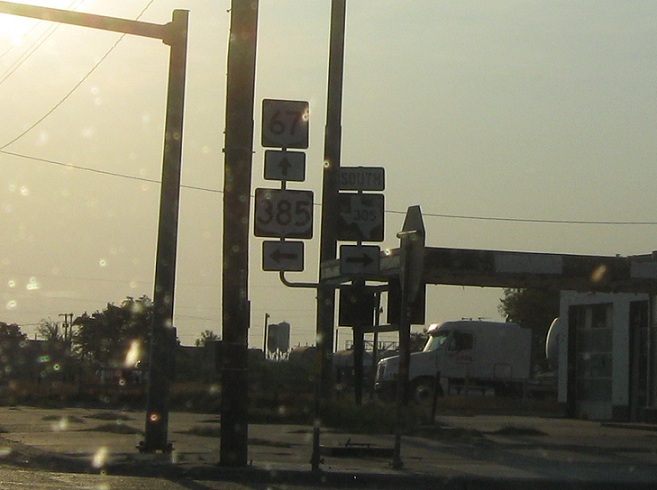 Straight for 67 north, left for 385 north, right for 305 south