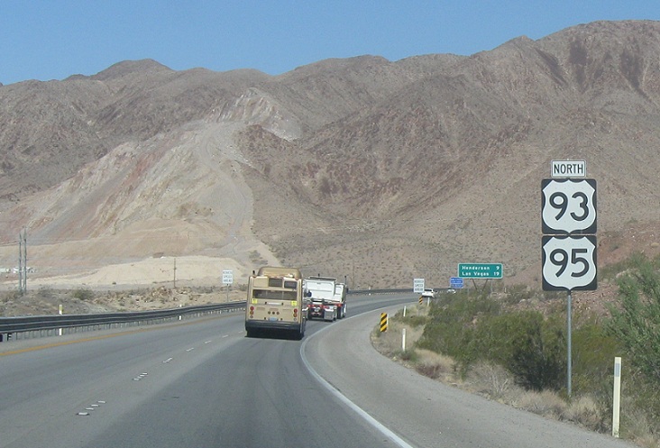 After that interchange, we’ll approach I-11/US 93/US 95. US 93 Business ends.
