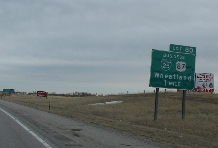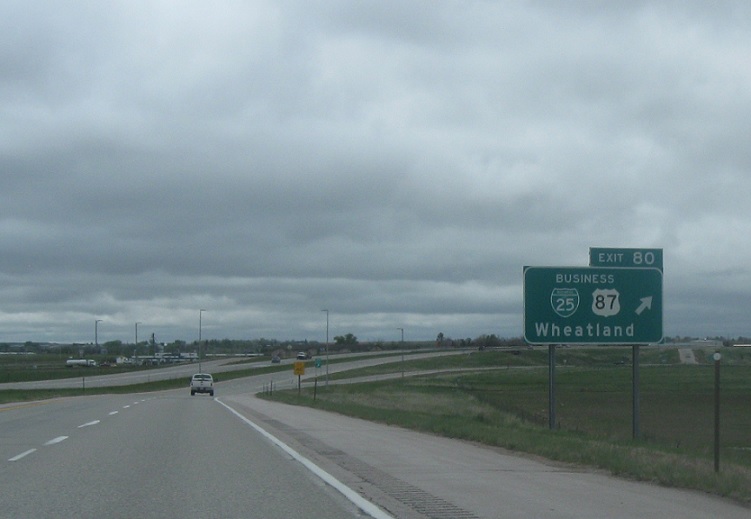 Junction I-25 /US-87 business coming up which serve the Wheatland area