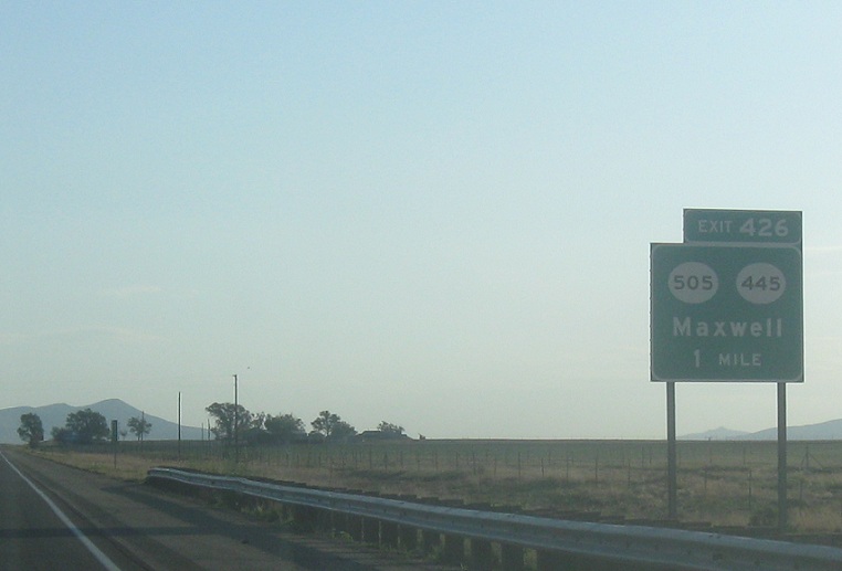 Exit for SR-445, which carries old 85 up to Raton and intersects SR-505 about 3/4 of a mile north of here