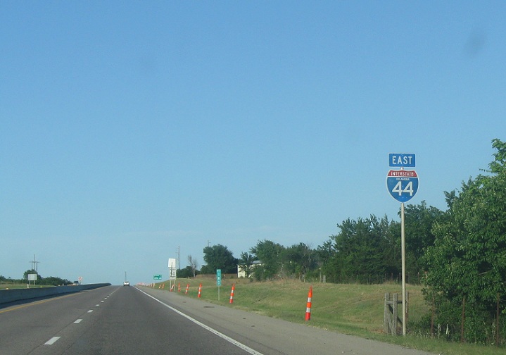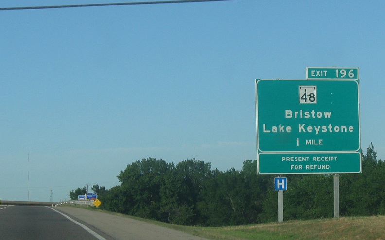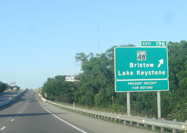 A few miles later, well approach the Bristow interchange which carries SH-48 and 66, which is unsigned here