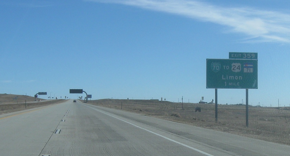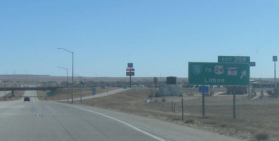 Exit for I-70 Business to US-24 and SH-71. US-40 and US-287 also split from I-70 here, but that’s not signed since it’s easier to access it when we cross I-70 again in a couple exits.