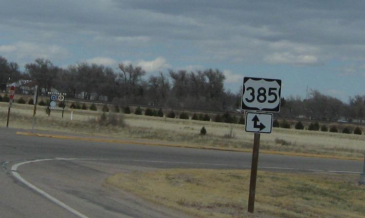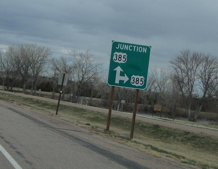 Junction US-385. Stay straight for 385 north towards Chappell, turn right for 385 south towards Colorado
