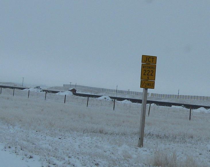Junction Wyoming 222 coming up, which heads north to I-80 and then the Warren AFB