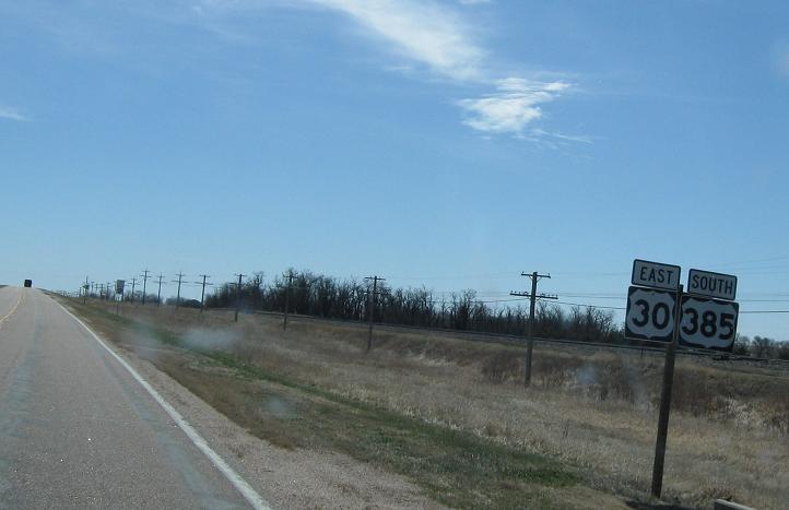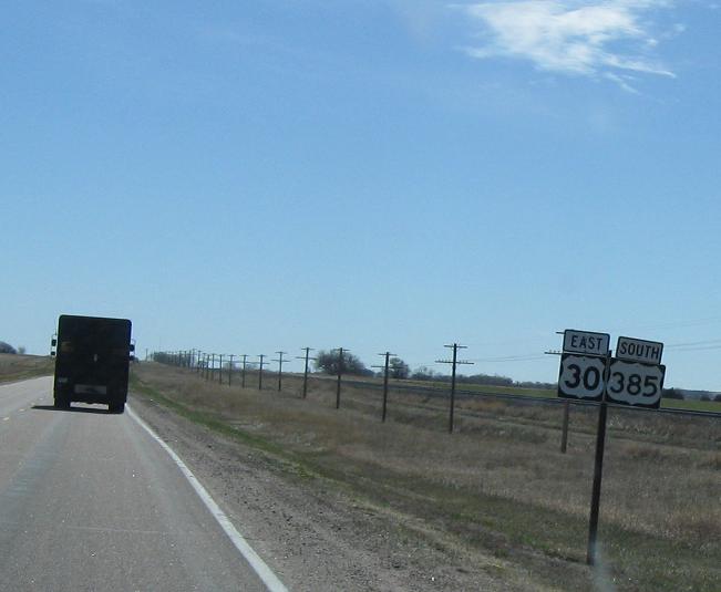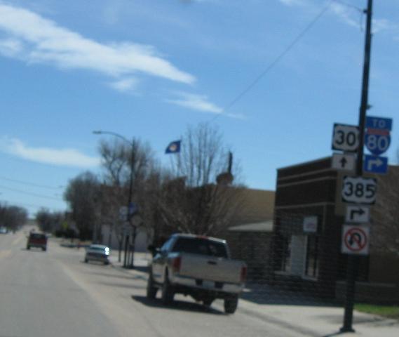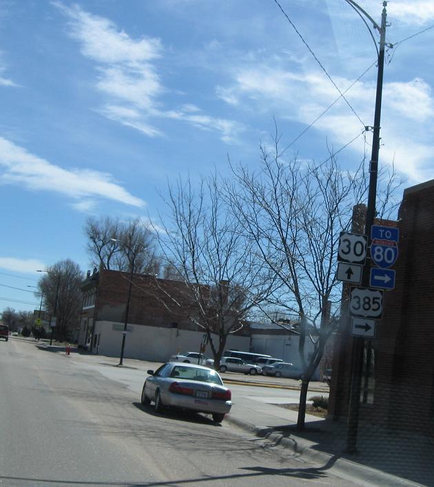 Turn right here in a block to get to I-80 (via US 385), stay straight for US 30