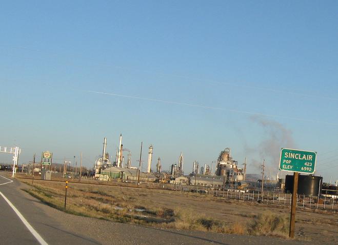 Welcome to Sinclair! Sinclair is the headquarters for Sinclair Gas and houses its largest refinery, visible in the background. A true company town.