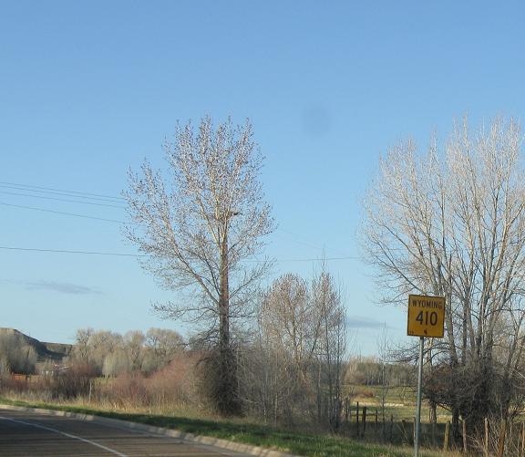 Reassurance shield at the beginning of WYO 410 as we pass through downtown Mountain View